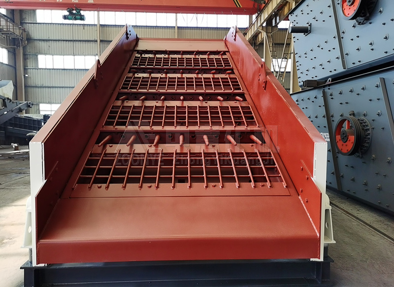 棒條式振動篩產品主要由激振源(振動電機)、機體、減振彈簧、前后支架等組成。